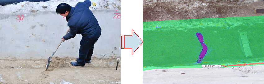 水科院的“西部中小河道岸坡防治成套手藝研討”課題的科研任務,嘗試渠道岸坡在嘗試的渠道灌水前、灌水凍脹后、冰雪融化后、動土融沉后4各階段需對渠道岸坡停止三維掃描,計較各個階段間的變更量